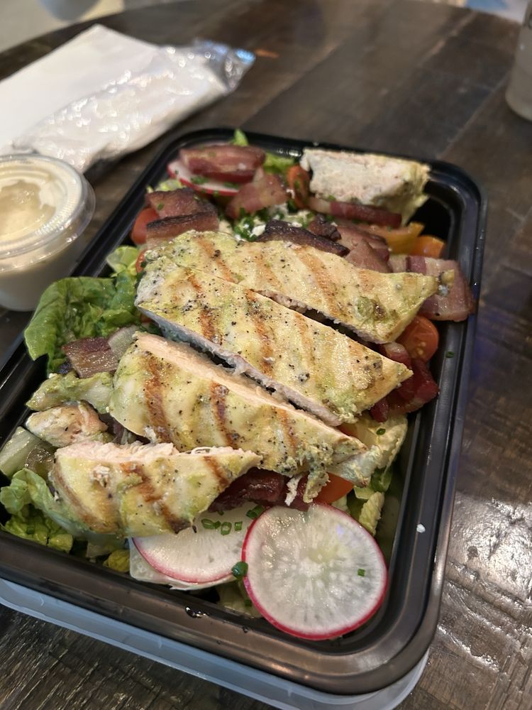 Lettuce, bocon, tomato, roddish, blue chz ranch